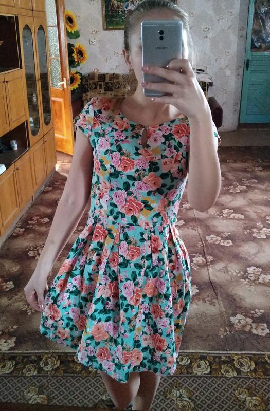 Квіткове літнє плаття. Розмір S, на худеньку і невисоку. В хорошому стані. Є дефект з замочком(видно на фото), але це не заважало. Відмінна яскрава забарвлення, при пранні не втратило своїх квітів. Хороша тканина, добре прасуватися.