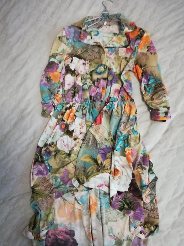 Квіткове плаття . Розмір 36, тканина тягнеться. Спереду коротше. 3/4рукава.