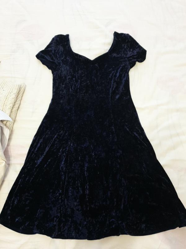 Сукня з важкого щільного оксамиту глибокого синього кольору. Розмір: M/L.