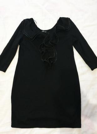 Чёрное трикотажные платье по фигуре с красивой обьемной зоной декольте.