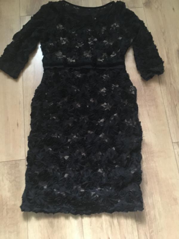 Дуже класне і ошатне плаття. Підкладка бежевого кольору. Квіти на тканини вишиті стрічкою.