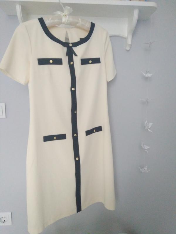 Кольору айворі з чорними вставками, з золотистими гудзиками. Розмір 36 ( S ) Мриятный, натуральний матеріал, не парить влітку. Одягала один раз на свято. Заміри за запитом. Приємних Вам покупок)