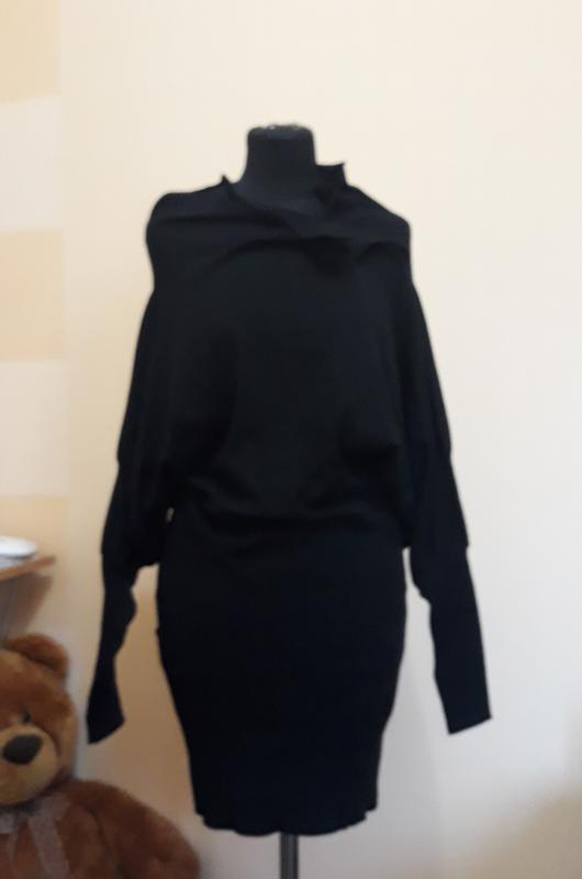 Тепле чорне плаття з кишенями Довжина від верху - 94 ПОБІДИ - 41. Дуже добре тягнеться Верх вільний Довжина рукава - 53 Плечі спущені Тканина дуже добре тягнеться. Підійде на розмір від З до Л.