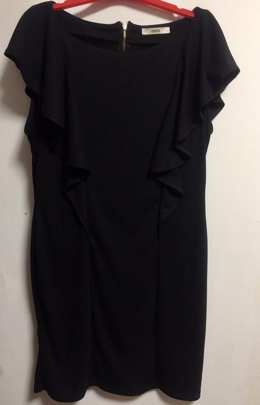 Изящное чёрное платье с рюшами. Подойдёт для любого случая. Материал приятный к телу. Состояние идеальное. Размер 40/42. Бренд Oasis