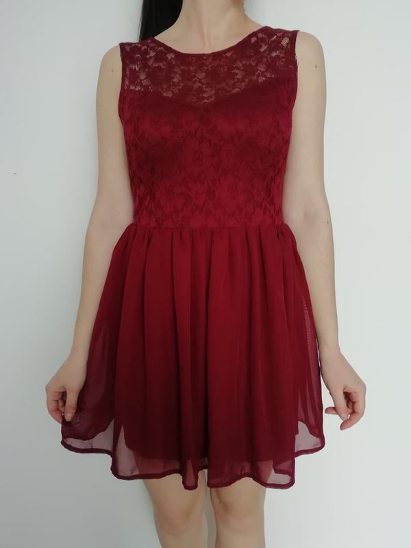 Плаття бордового кольору, верх-гіпюр, низ-шифон. Довжина - 81, талія-65-68,ог.до-88