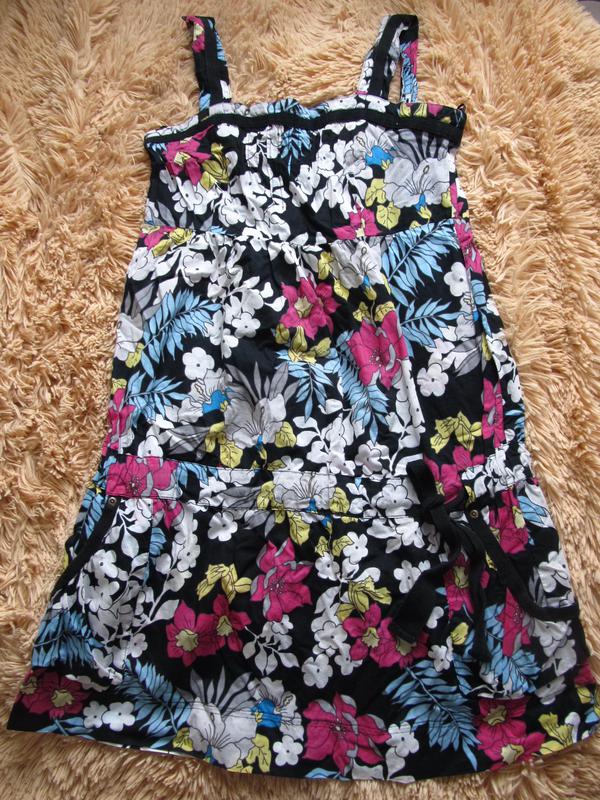 Легке літнє плаття з натуральної тканини, дуже приємне до тіла, не відчутно на собі. Піде на L. Є дві кишені. На талії стягується внутрішнім поясом.