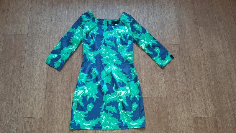 Стан нового,одягала один раз.Виглядає дуже красиво.Укорочений Рукав.Відмінна довжина,на спині замок. У складі є бавовна.Тканина ,як стречевый атлас гарною щільності.