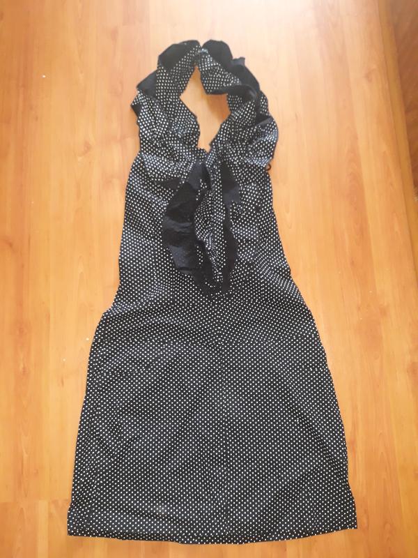 Французька сукня з красивим жабо,спинка на гумки,відмінної якості,влітку в ньому буде і красиво та комфортно,купувала за 100 євро.Воно дійсно відмінне,це обмежена колекція була,їх було в бутіку два кольори,ще таке червоне продавали,але чорне набагато привабливіше. На S спокійно сідає на стегна до 90 див.