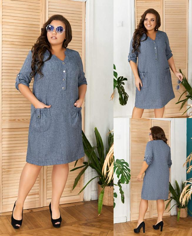 предоплата 100% Платье Елис Модель : 4089 - Размеры: 1(48-50), 2(52-54), 3(56-58) - Длина изделия: 98 см (от плеча по спинке) - Рукав: 33 см - Материал: лен - Цвета: пудра, зеленый, светло серый и темно серый - Цена : 440 грн - Летнее льняное платье свободного кроя, с двумя накладными карманами отделаны резинкой и хлястиком, кнопки по линии груди, V образный вырез и рукав с регулируемой длиной