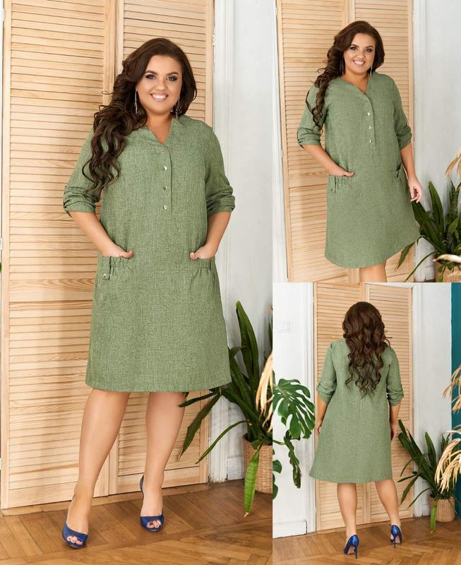 предоплата 100% Платье Елис Модель : 4089 - Размеры: 1(48-50), 2(52-54), 3(56-58) - Длина изделия: 98 см (от плеча по спинке) - Рукав: 33 см - Материал: лен - Цвета: пудра, зеленый, светло серый и темно серый - Цена : 440 грн - Летнее льняное платье свободного кроя, с двумя накладными карманами отделаны резинкой и хлястиком, кнопки по линии груди, V образный вырез и рукав с регулируемой длиной
