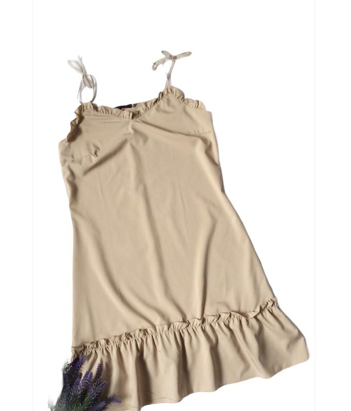 Приголомшливе бежеве легке плаття вільно від тіла, з оборками, тонкі бретелі на зав'язках, приємне на дотик, не світиться. Новий!!! ✅ S - ПОГ 43 ПІТ 36 ПОБІДИ 44 ДОВЖИНА 75 ✅ M - ПОГ 45 ПІТ 40 ПОБІДИ 49 ДОВЖИНА 76 БРЕТЕЛЬ 28 🚚 Доставка -15 грн через JUSTIN 💙