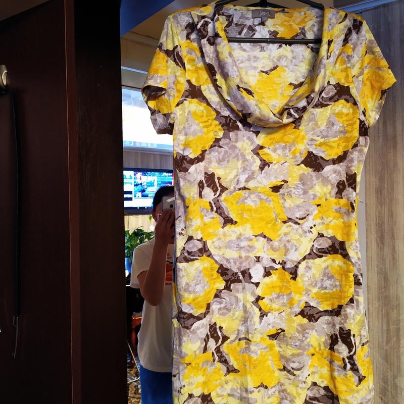 очень красивая расцветка ,сочетание цветов благородное. Красивый ворот подчеркнёт декольте ,свободного кроя Ткань все та же марлевочка.Она очень лёгкая и я люблю ходить летом ,у меня много таких вещей ,футболки и ид