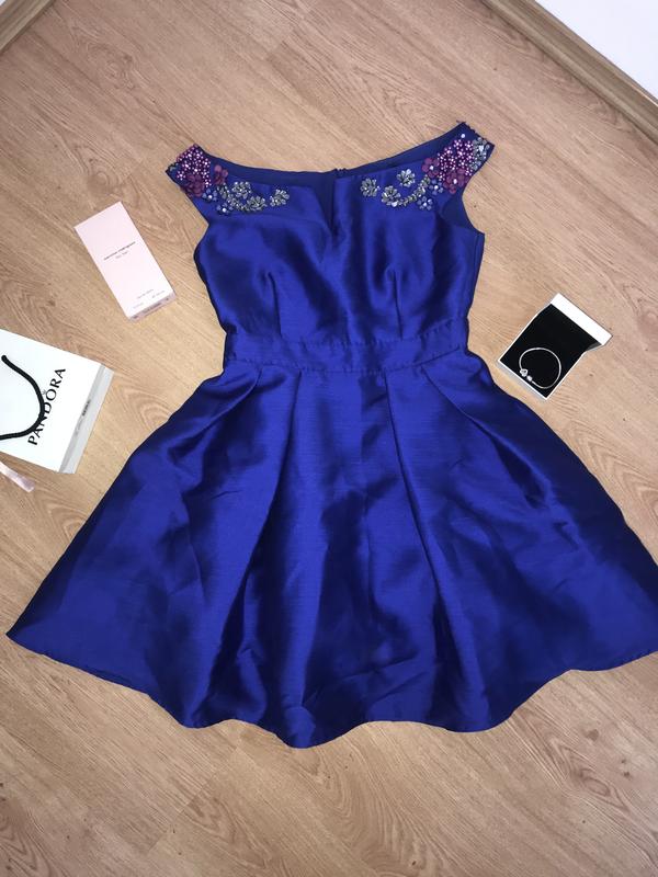 Неймовірна синя сукня на плечі, спідниця-сонце,декорована камінцями,підкладка з фатину