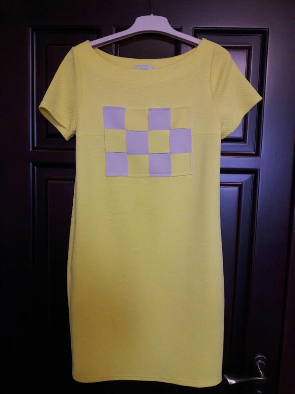 Зручне, яскраве плаття, колір в живу яскраво жовтий, є кишені.
