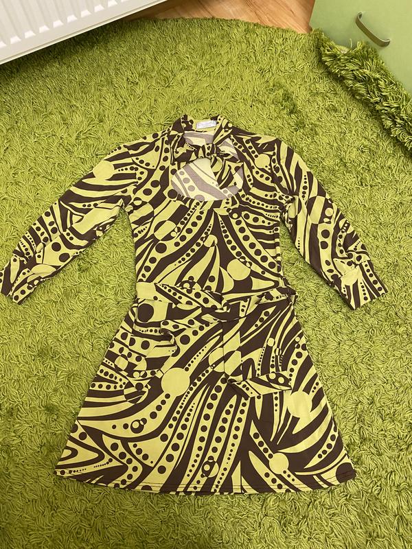 Цікаве плаття із стійкою. Легеньке, приємна тканина, добре тягнеться. Фірма Ce Me London. Розмір на етикетці S/M. Довжина 79 см Рукав 3/4, довж. рукава 45 см, плечі 38 см. Стан ідеальний.
