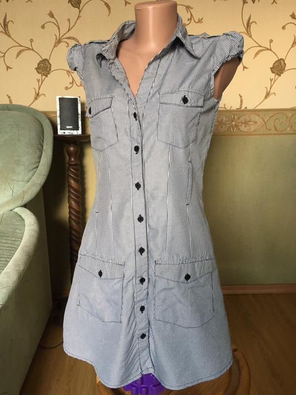 Котонова сукня сорочка у вертикальну смужку
