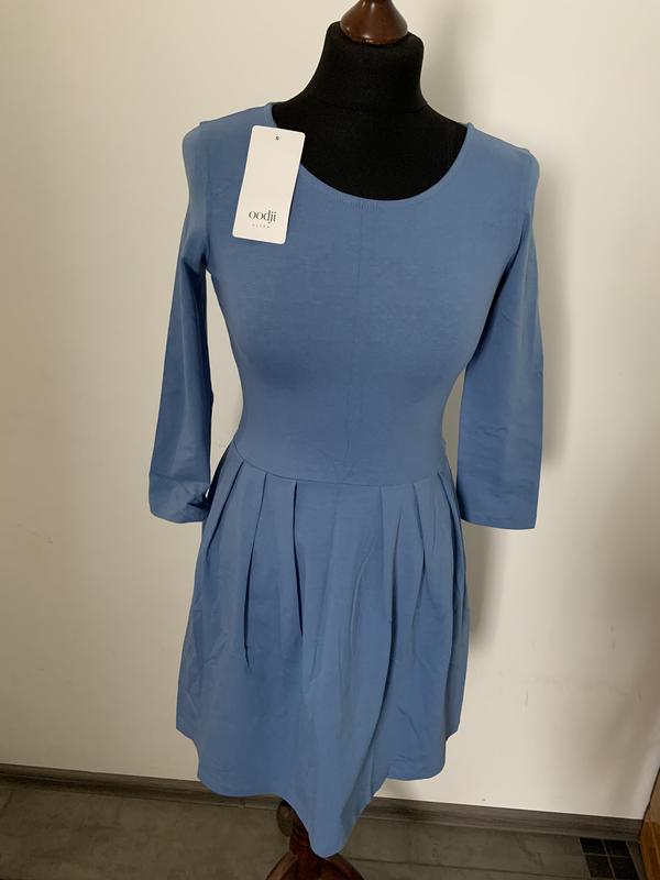 Сукня з м'якого трикотажу ніжного небесного кольору.На теплу весну-осінь або на вечірній прохолодне літо. Довжина виробу 80 см Рукав Довжина 45 см {3/4} Пот33 Пог 38