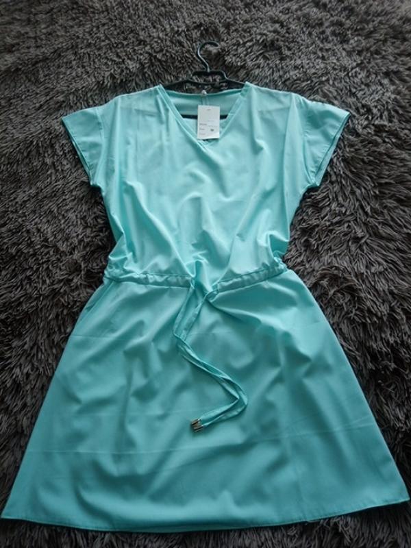 Новое платье, размера м. Очень красиво смотрится, садиться отлично за счет стяжки на поясе. Есть кармашеки. Ткань софт.