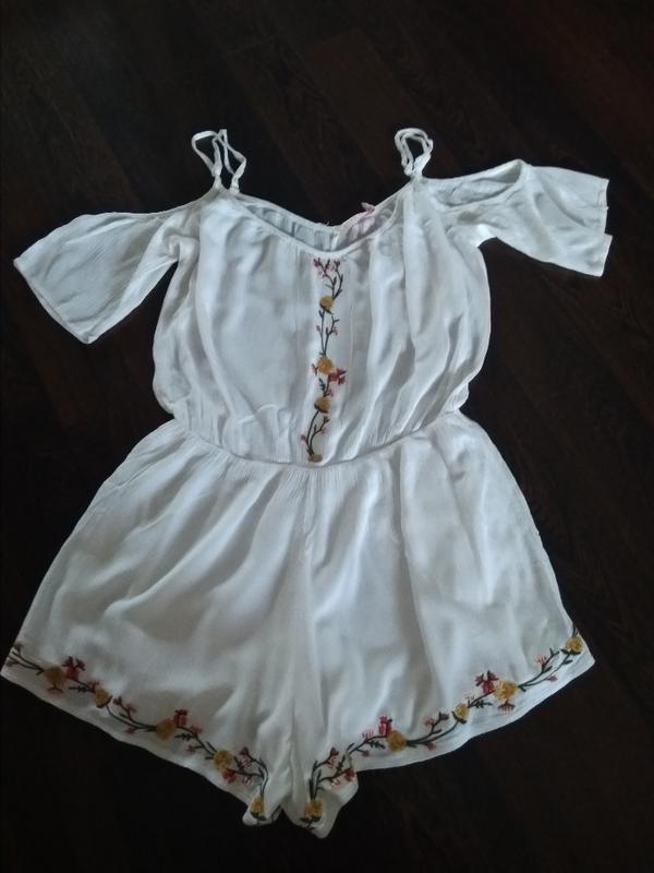 Новий віскозний ромпер з вишивкою Пояс на резинці Шлейки регулюються Шорти на підкладці Довжина - 78см Пояс гумку не натягала - 35см Ширина від пахви до пахви - 53см