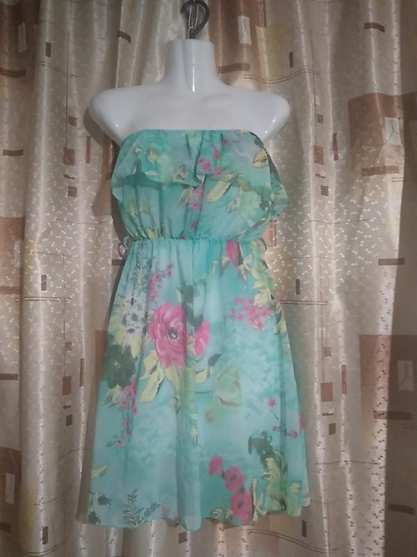 літнє плаття з тонкого шифону на підкладці(тонка, не прозора), ніжного м'ятного кольору півобхват резинки зверху від 27см, Пог 34, Пот від 25см, довжина до талії 23см, довжина спіднички 50см підкладка віскоза