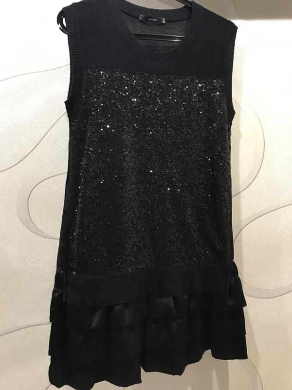 Вязаная спинка , впереди все обшито палетками, юбка платье из шелковой ткани сделана ярусами
