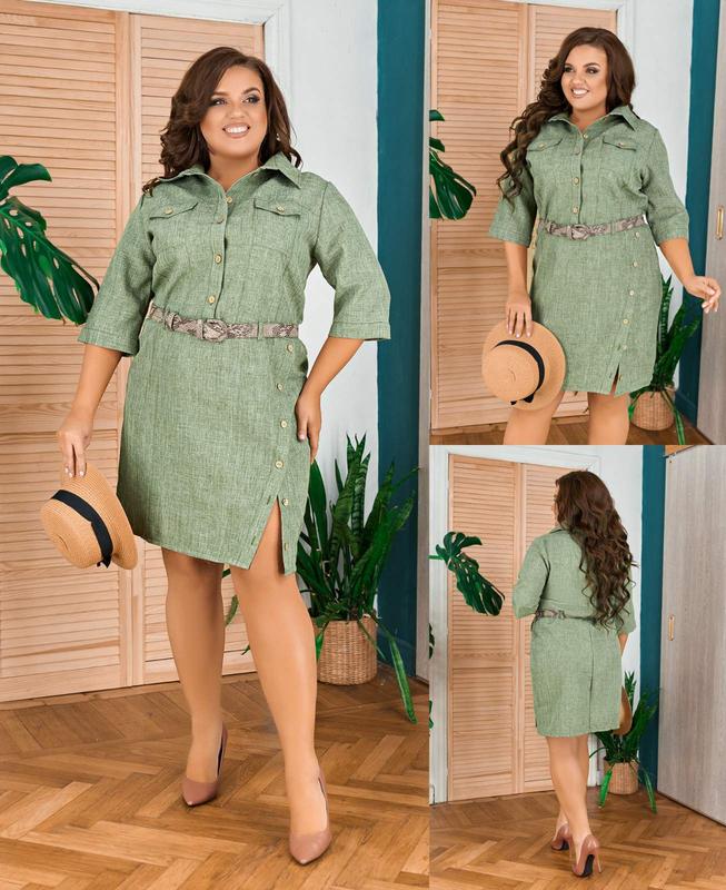 передоплата 100% Плаття elis Модель : 4096 - Розміри: 1(48-50), 2(52-54), 3(56-58) - Довжина по спинці: 97 см - Рукав: 37 см - Матеріал: льон габардин - Пояс в комплекті - Дві кишені з клапаном, елегантний розріз з боку регулюється гудзиками - Кольори: пудра, графіт, хакі - Ціна : 460 грн