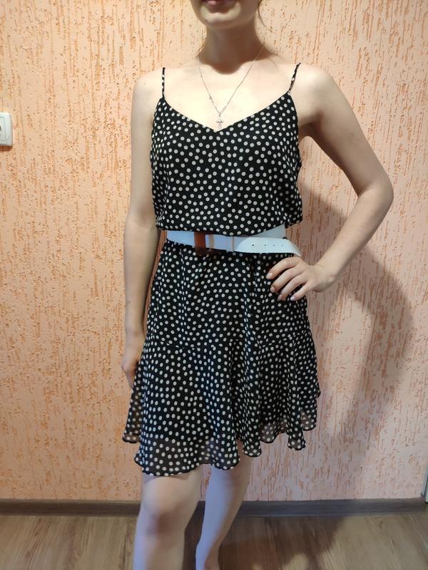 Повітряне плаття в горох, дуже гарне, на підкладці, внизу баска , розмір 12