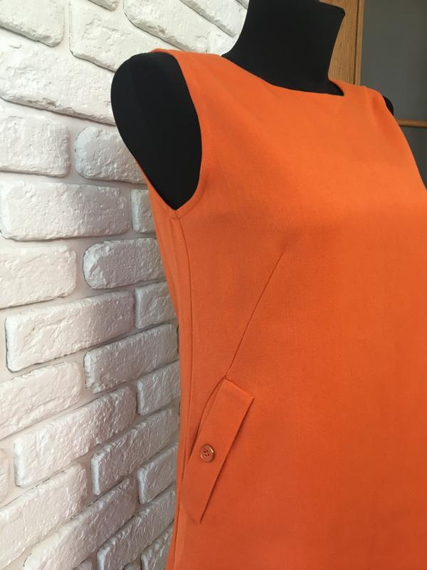 Сукня трапеція. Акуратно сидить по фігурці. Теракотового кольору. Збоку на невидимій блискавки. На спинці застібається на ґудзик. По боках кишені,не відстовбурчуються! На кишенях гудзики. Сукня щільне. На шовковій підбивці. Стан ідеальний! Сукня бренду Jaspal. Тайський бренд класу люкс! Довжина 79 див. Ширина внизу 52 див. Груди 42см.