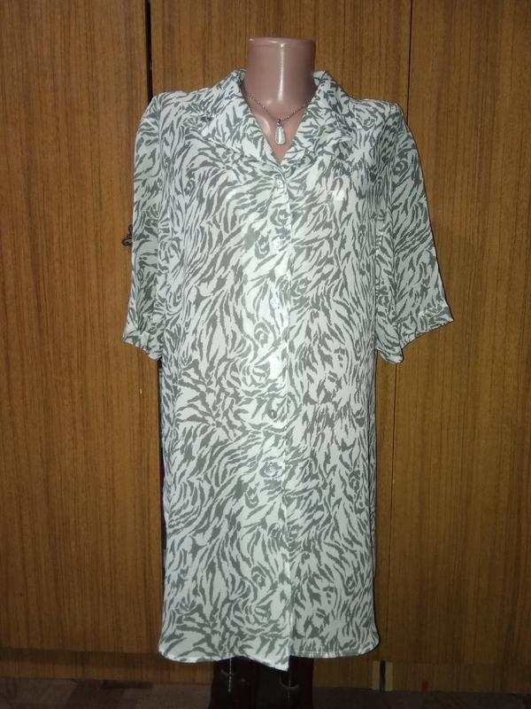 Класна річ, тканина натуральна. По боках разрезики. ОГ 112 см ВІД 108 см ПРО 114 см Довжина 82 см