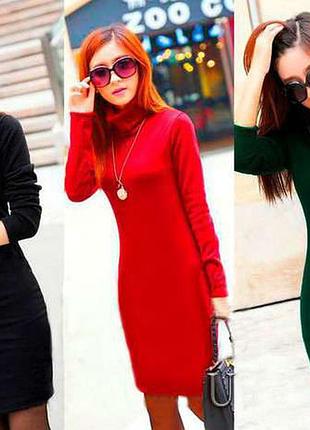 Платье-гольф по СУПЕР-ЦЕНЕ! Размер 42,44,46,48 Франц.трикотаж Цвета-чёрный, синий-электрик,т.синий,мята,красный,бордо,зеленый Длина 88 см Отправка в день оплаты