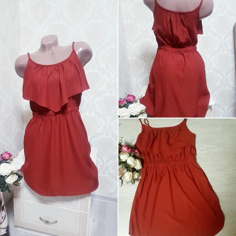 Стильне плаття, сарафан. На талії широка гумка,по боках кишені. Шлейки регулюються. Розмір 36-38S,M ПОГ-44-45 Талія на резинці Довжина-83см Дивіться інші мої оголошення, багато якісних брендових речей за доступними цінами.
