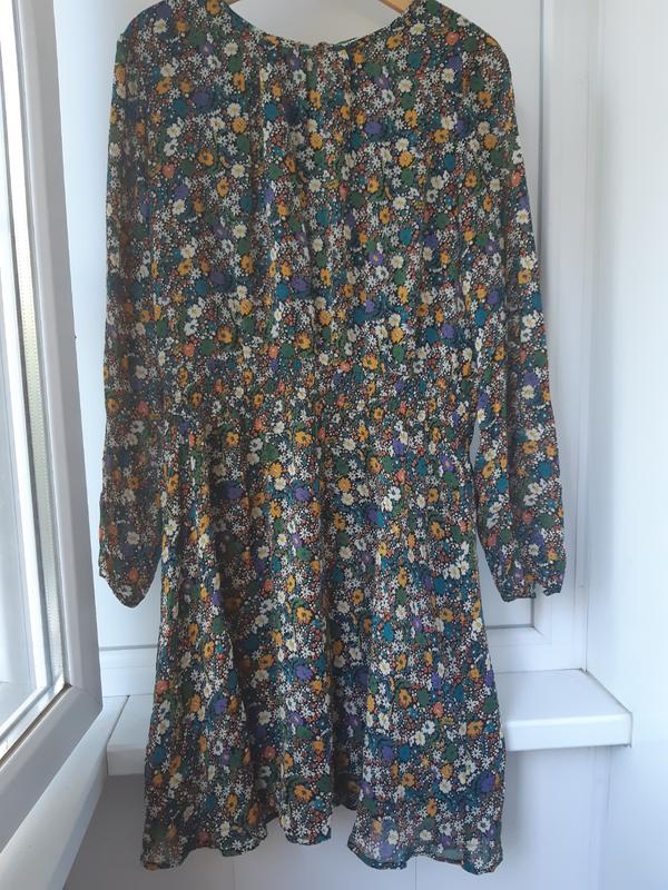 Шикарне плаття. Виглядає дуже ніжно. Плаття йде на підкладці. Пояс широка м'яка гумка. Розмір 16 Довжина 100 пог 60 піт 44-55 ( гумка ) побіди 70 рукав 64