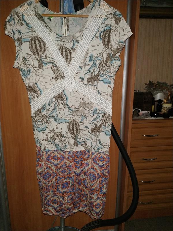 💛💙 мінімальне замовлення 100 грн Цікаве і незвичайне плаття р. Л, ззаду вгорі блискавка. Об'єднані тканини, верх під тонкий шифон з мереживною обробкою (показала на фото), низ - тонкий віскозний трикотажик в обтяжку. Моделька з напуском. ЗА в грудях 52см, довжина 90см. ✋Вся інформація у розділі "Про мене". ✋Додаткові заміри і фото за запитом. ✋Всі питання заздалегідь обміну та повернення немає.
