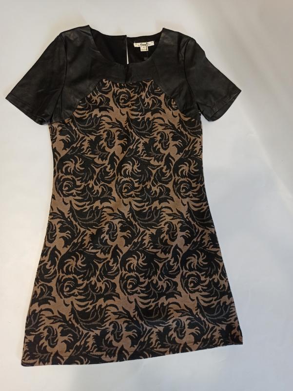 трикотажное платье на подкладке, верх сделан из черной экокожи, застёгивается по спине на молнию,плюс остаётся небольшой разрез