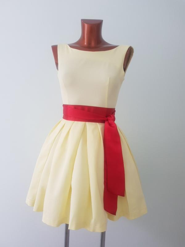 очень красивое нарядное платье нежно-желтого цвета на пышном подъюбнике из фатина, приталенного силуэта, сзади на молнии, на юбке встречные складки.Оделось один раз на выпускной.пояс можно заменить на любой другой цвет, позволяющий подобрать под платье любые аксессуары длина 77 ширина под проймой 40 ширина по талии 32
