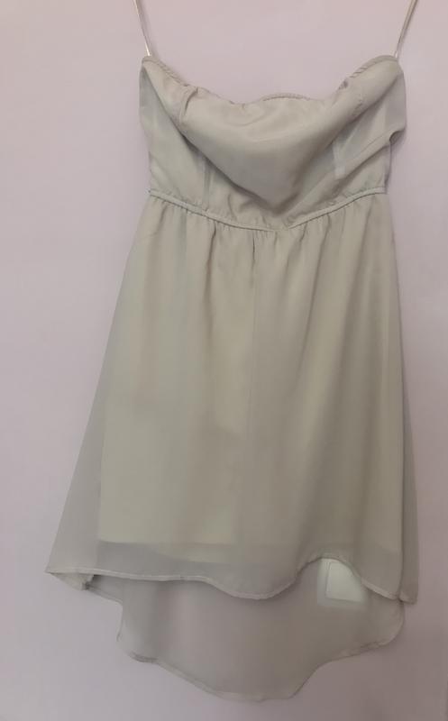Бежеве шифонову сукню. Ззаду довше. Є маленький недолік-на фото вказано. Але при носінні непомітно.