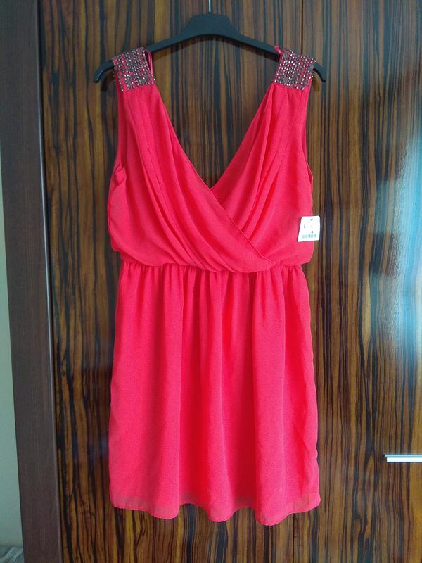 Яскраве літнє шифонове плаття. Коралового кольору. Пояс на резинці. Розмір L. Можна і на М-ку.