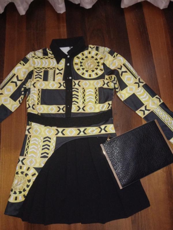 нове плаття, але бірочку зрізала. в шкарпетці не було, розмір не підійшов. розмір вказано XL, але підійде і на М, L. принт як Versace.