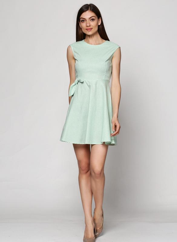 Салатовое платье клёш в полоску. ПОГ-43,ПОТ-35, длина-85см
