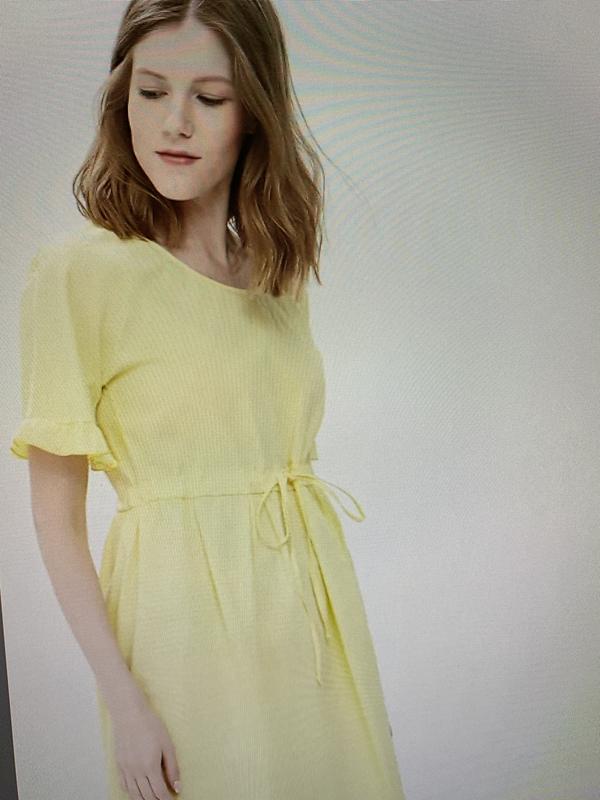 Теплий жовтий колір, стан нового .Длина платья 87 см. ОГ-44. Рукав спущен,длина рукава от высокой точки плеча 20. Бедра 57 { фасон не облегает} прекрасный летний вариант. Длина от высокой точки плеча до " пояса" 34. талия немного завышены. На резинці, затягується тонким паском.