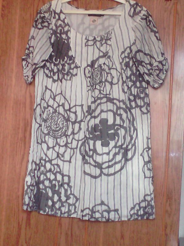 Туніка - плаття з коротким рукавом з дуже приємною тканини. Розмір написаний М. Пог 50 см, поп 40, довжина 83 см, довжина рукава 28 див. 95% коттон, 5 % люрекс