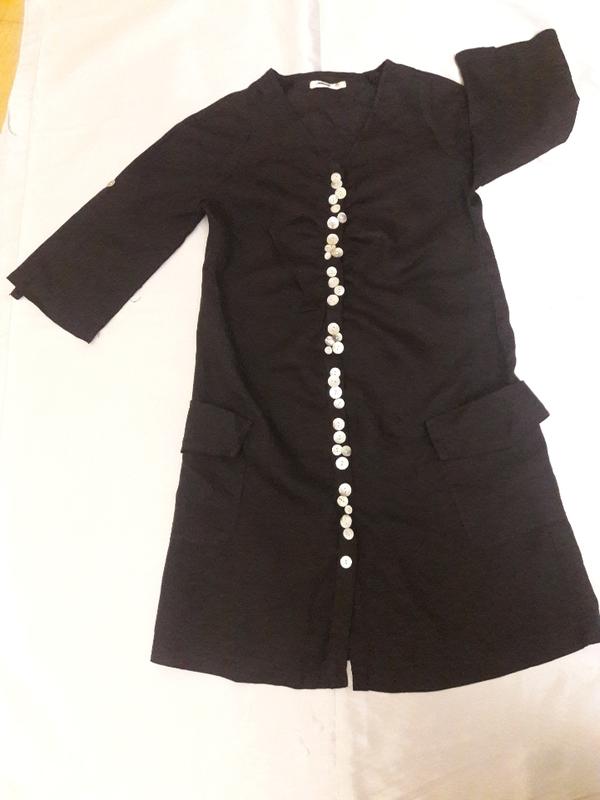 Льняное плвтье на кнопаах, украшенное пуговицами из натурального перламутра. ПОГ 44 см, ПОБ 53 см, длина 93 см. Лен немного светится.