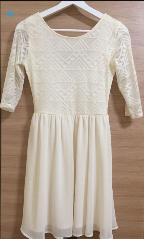 Легкое воздушное платье молочного цвета с открытой спинкой, можно носить с пояском, размер 36, на рост 165. Отлично сидит по фигуре.