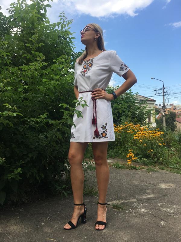 Гарна вишита сукня-туніка з поясом (вишиванка з автентичним візерунком)