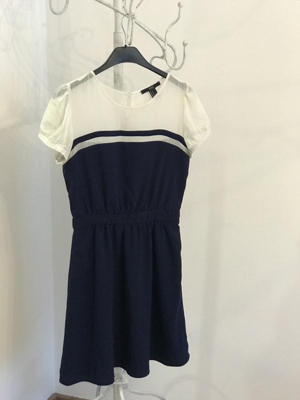 Тёмно синее платье вер молочный шифон