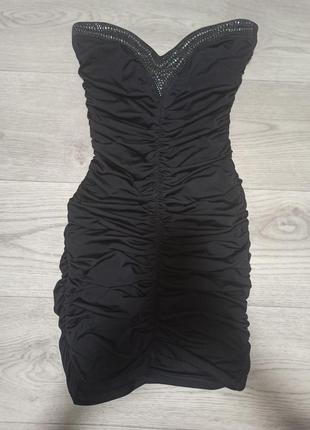 Вечернее платье бренда Forever 21. Маркировка размера М. Подойдет от XS (у меня) до М т.к. тянется отлично. Одевала пару раз, все камушки на месте. За счет складок длину можно регулировать. На силиконовой полоске (не сползает).