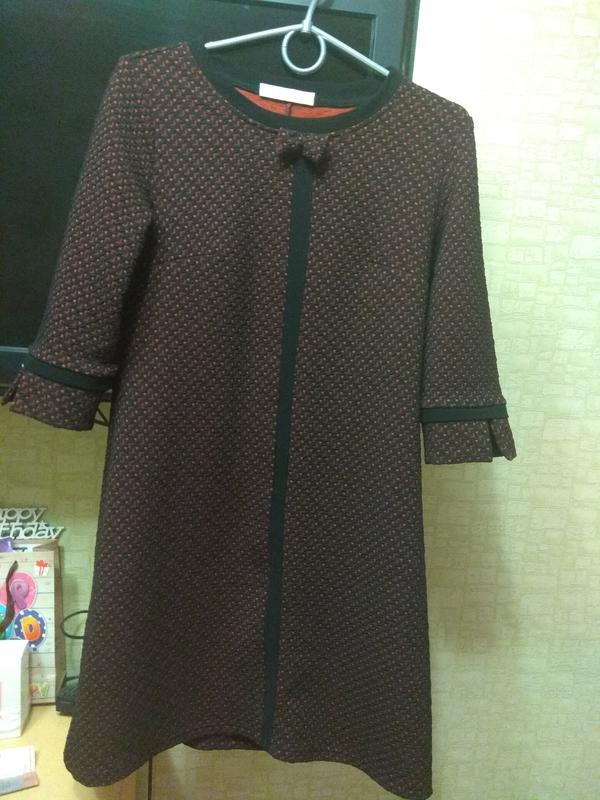 Тканина класна, тягнеться. Плаття до низу трапецією. Колір як на другому фото. Довжина 86см.