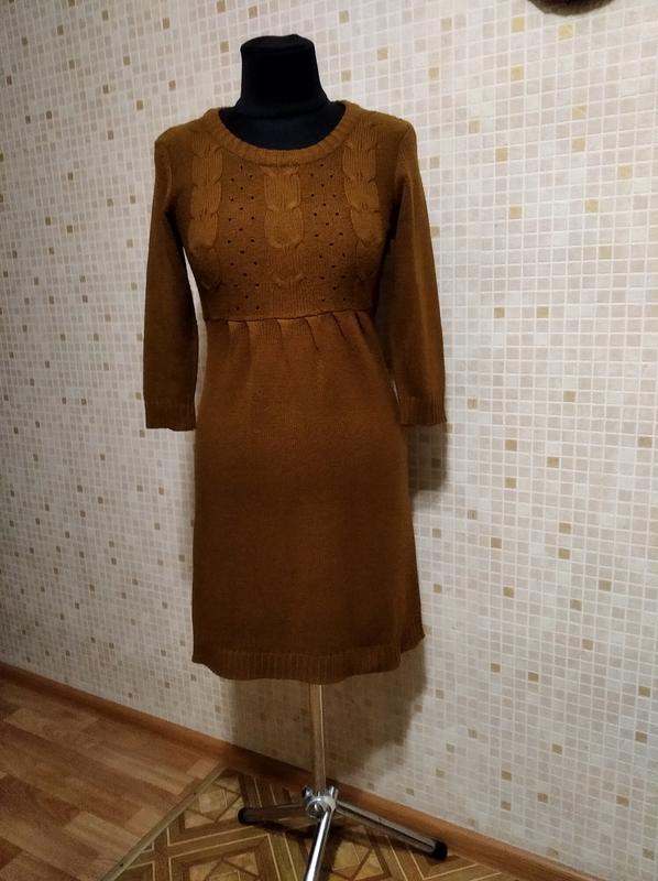 Сукня машинна в'язка, рукав 3/4 гірчично - медового кольору, можна підниз одягати тоненький гольф.