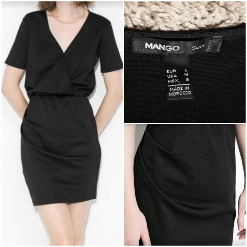 Оригинальное платье от испанского бренда Mango.Насыщенный черный цвет.Ткань плотная, на подкладе. Хорошо держит форму.V-образный вырез горловины, с запахом, короткие рукава.Идеально подчеркивает талию на легкой резинке.С правой стороны платья слегка пресборенно. Состав:74%вискоза,23%полиамид и 3%эластана. Замеры: длина 109 см., плечо 12см.,ширина плеч 43см., ширина подмышек 43см., длина рукава 23см., ширина по низу 52см. При покупке платья👉🛍подарок iтальянские колготки!!!