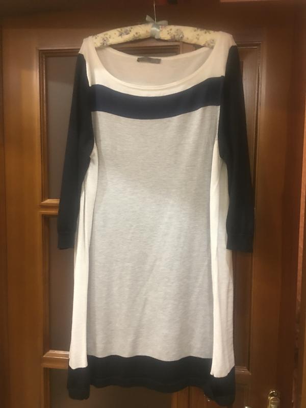Тонкая трикотажная туника, состав отсутствует (Похоже на акрил и эластан) в нормальном состоянии. ОГ130, ОТ124, ОБ140, длина 95, блочной расцветки